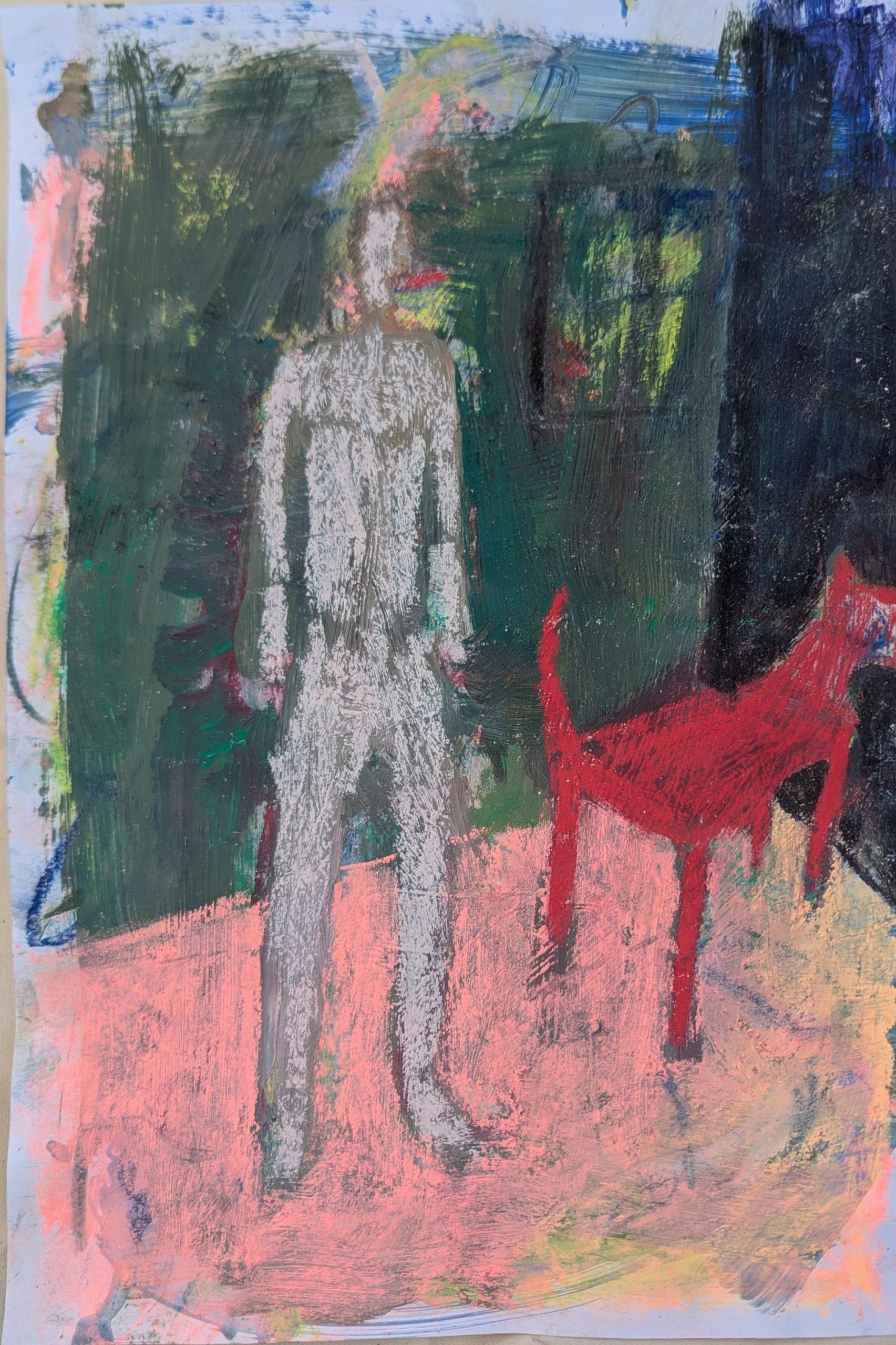 Acrylic paint layered over graphite and chalk