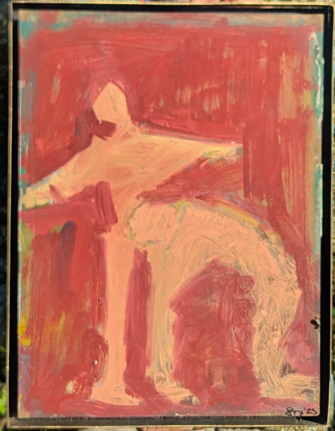 Oil Paint on board framed in hand made brass frame