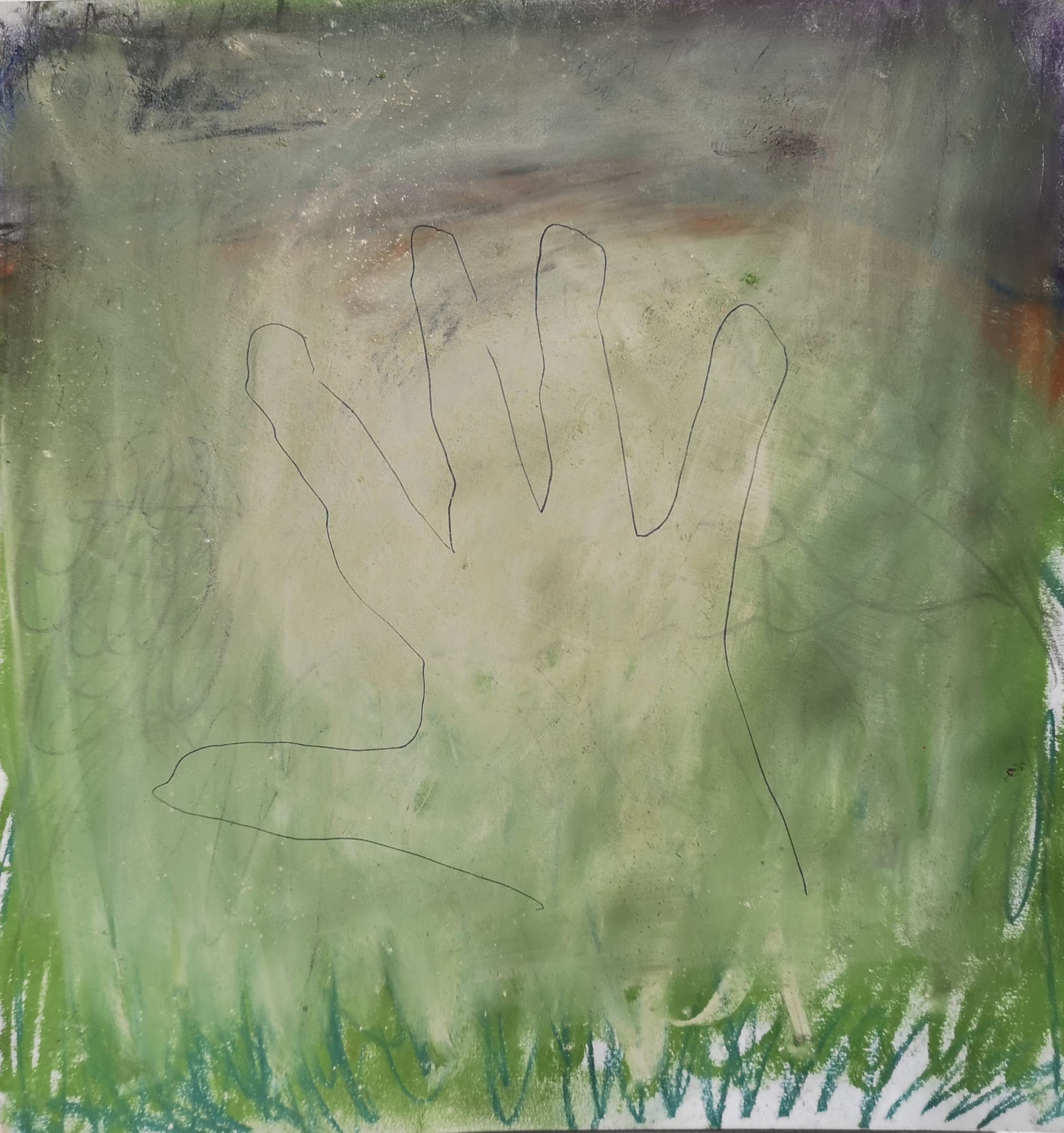 The colours and softness of the chalk compare with the hard certainty of the graphite line.It is always a battle for me to get the image. Michaelangelo said the piece is already there, its just a matter of finding it. In the end it is the hand, the body, a universal image we all share, that reveals itself.